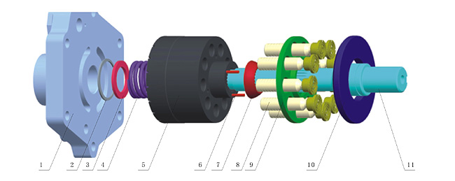 該油泵泵軸端密封設計為兩種形式,一種是機械密封,另一種是填料密封,可根據具體使用情況和用戶要求確定。