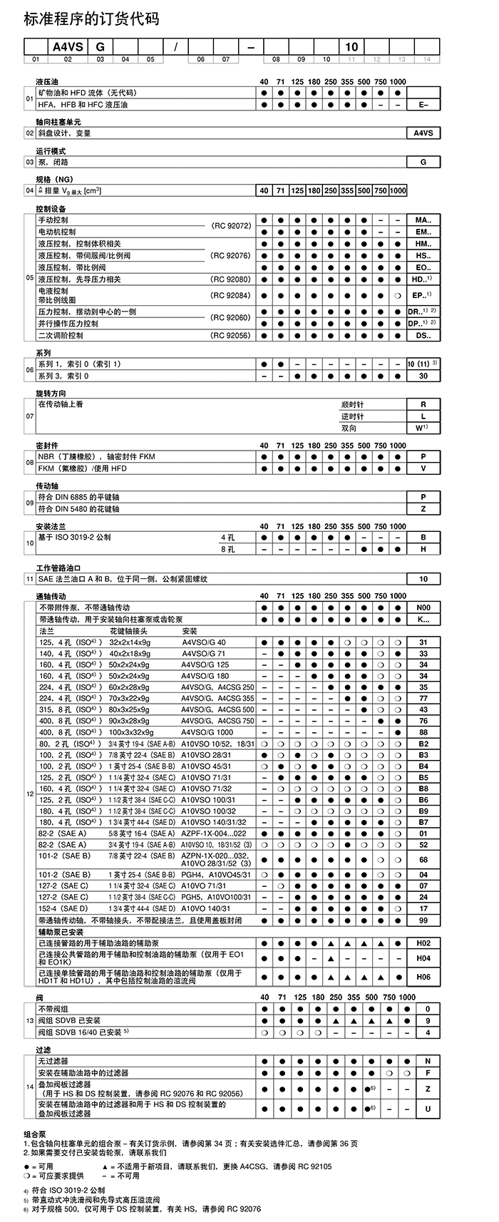 REXROTH力士樂(lè)柱塞泵A4VSG系列特性